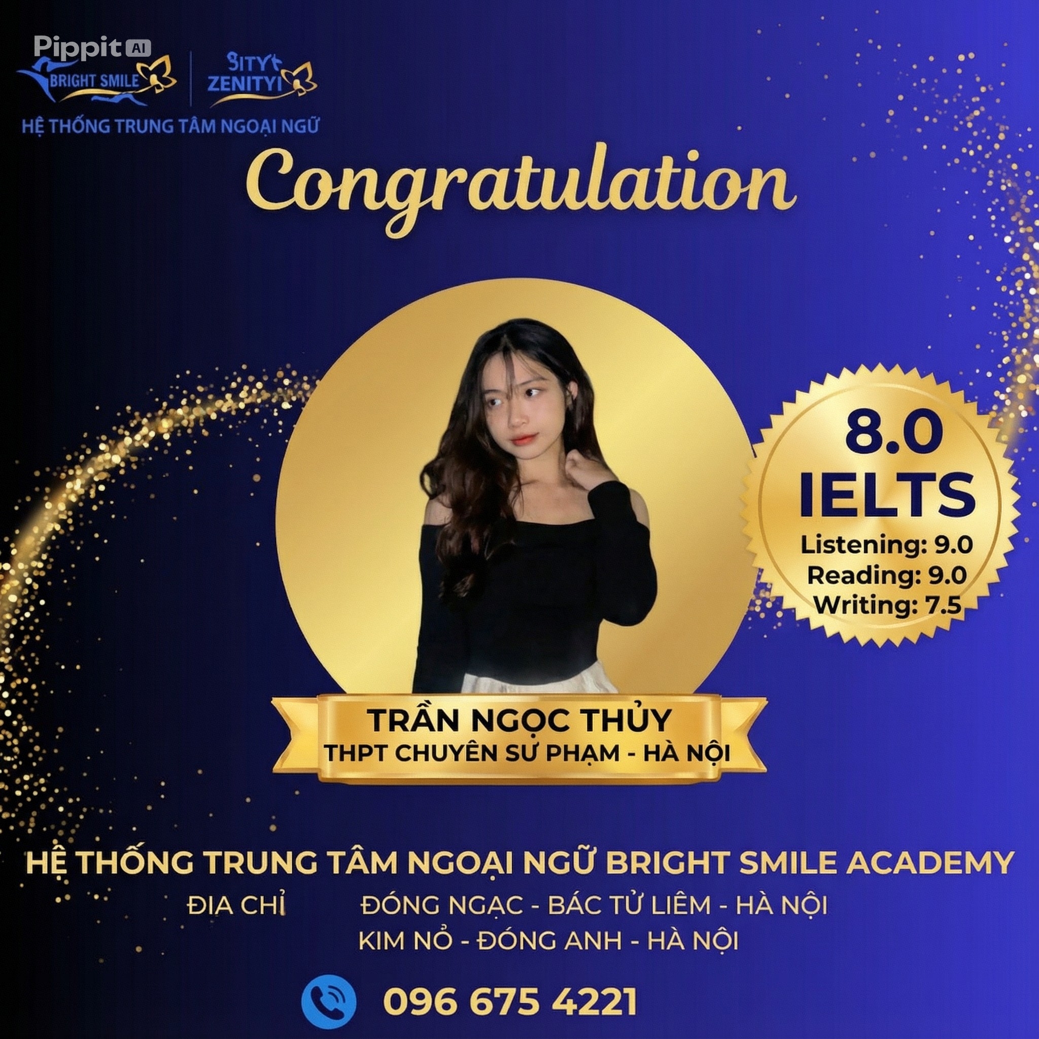 📌 " Cảm ơn IELTS ZENITH và các thầy cô vì đã giúp em tối ưu hoá từng kỹ năng và hoàn thiện chiến lược làm bài. Nhờ lộ trình cá nhân hoá và sự hướng dẫn rất kỹ lưỡng, em đã đạt 8.0 đúng như mục tiêu đặt ra. Em đặc biệt ấn tượng với cách thầy cô sửa Writing & Speaking chi tiết, giúp em hiểu rõ tiêu chí chấm điểm và cải thiện nhanh chóng. Đây là một trải nghiệm học tập thực sự chất lượng và xứng đáng "