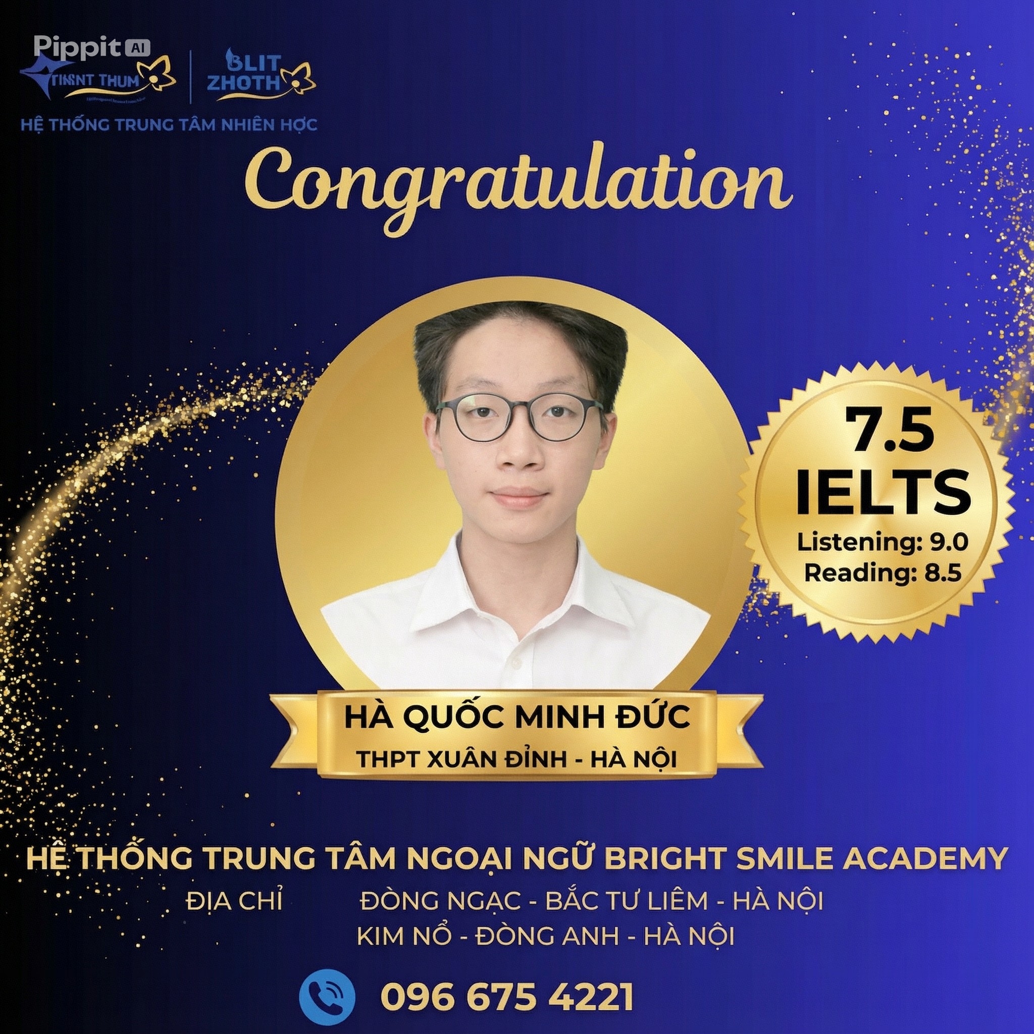 📌"Nhờ học tại IELTS ZENITH mà em đã nâng được điểm lên 7.5 chỉ trong một thời gian ngắn. Các thầy cô hướng dẫn rất kỹ, chỉ rõ từng lỗi và giúp em cải thiện từng kỹ năng một cách bài bản. Điều em trân trọng nhất là mỗi buổi học đều có phản hồi cụ thể, nên em luôn biết mình cần chỉnh gì để tiến bộ. Đây là kết quả em thật sự hài lòng"