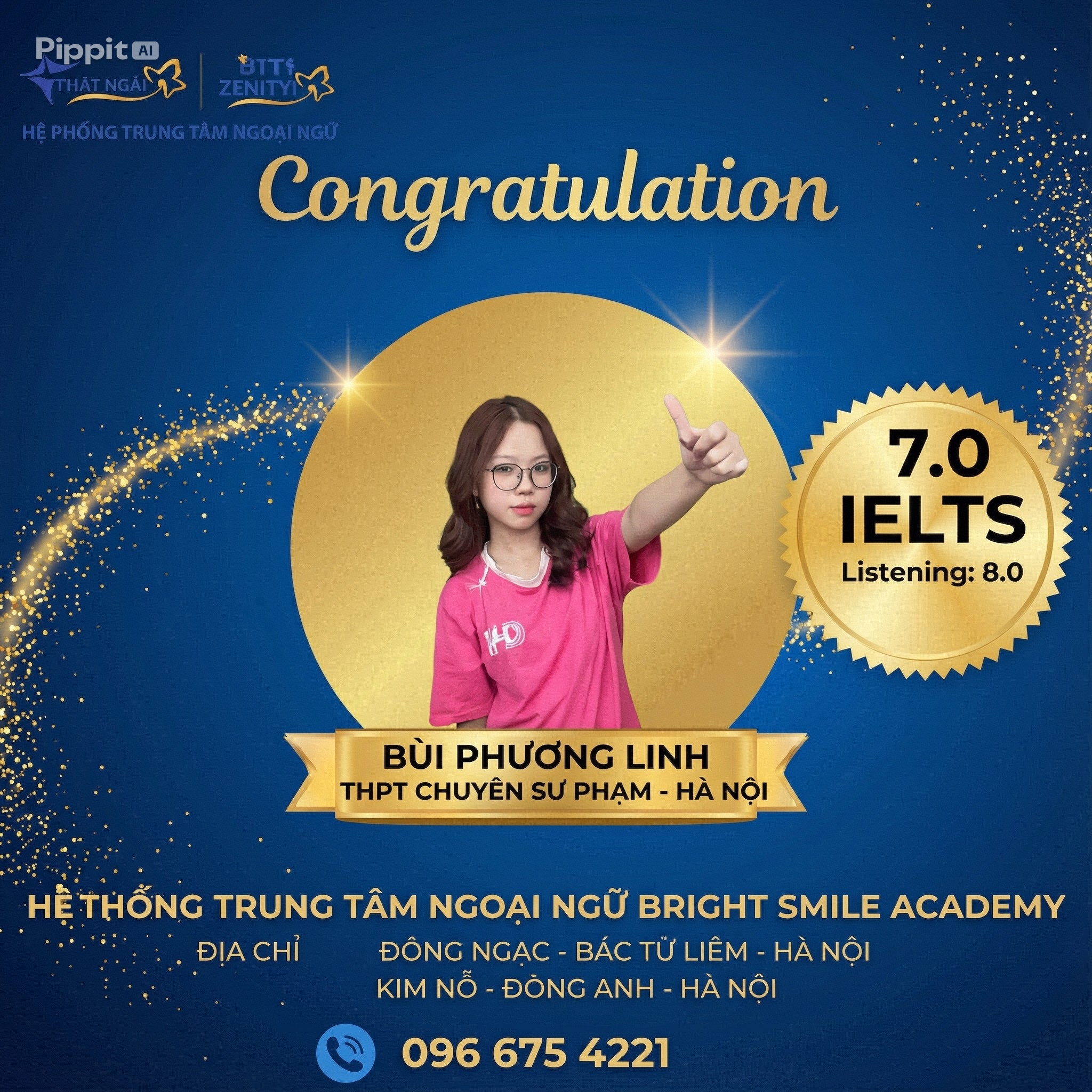 📌"Trước khi học tại IELTS ZENITH, em luôn lo mình khó đạt được 7.0. Nhưng nhờ lộ trình rõ ràng và sự hướng dẫn rất chi tiết của thầy cô, em cải thiện từng kỹ năng và đạt đúng mục tiêu đề ra. Em thật sự biết ơn vì mỗi buổi học đều giúp em tiến bộ một chút, và cuối cùng đã có được kết quả em mong muốn"