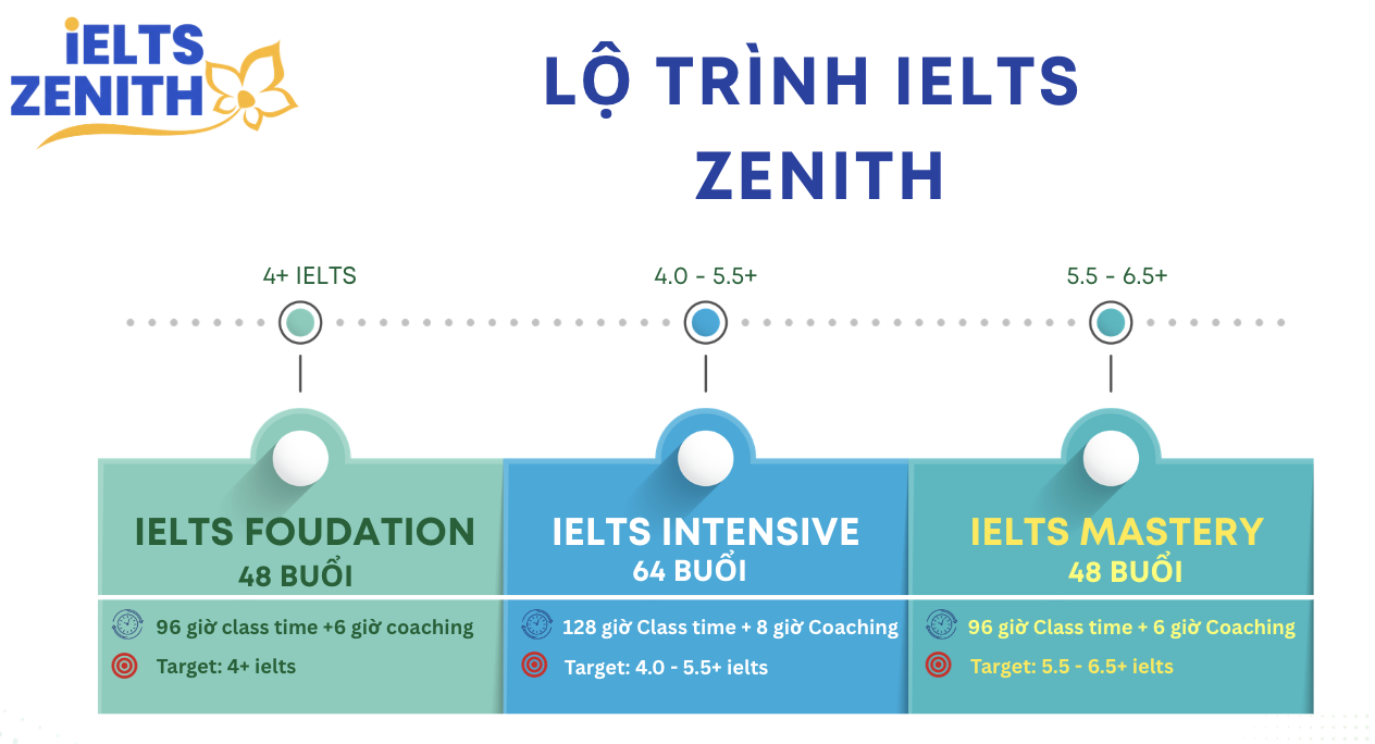 Tại IELTS ZENITH, mỗi học viên được xây dựng một lộ trình học riêng, dựa trên trình độ hiện tại, mục tiêu band điểm và thời gian có thể đầu tư